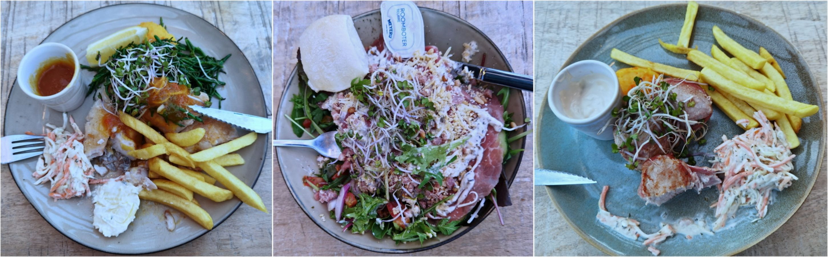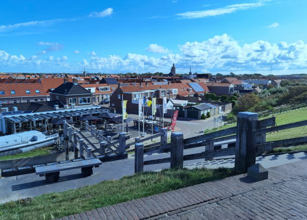 Heute haben wir einen Ausflug nach Westkapelle gemacht, dem westlichsten Zipfel Zeelands und damit an der Mündung der Westerschelde, dem Beginn der langen Zufahrt zum Hafen von Antwerpen. Invasionsdenkmal und Gedenkstätte sowie vieles andere hier erinnert an die Erstürmung der Alliierten am 1. November 1944 vom Meer aus. Der mit Brackwasser gefüllte Binnensee im Hinterland ist ein Zeitzeuge der Überflutung des Orts, einen Monat vor der Invasion, nachdem der Damm von alliierten Bombern zerstört wurde. Heute ist die Stadt ein beliebtes Ausflugsziel. Hier sind wir dann auch eingekehrt und ließen es uns unter einem Dach aus Weinreben gutgehen.