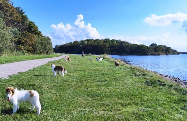 Am nächsten Tag haben wir einen schönen gemeinsamen Spaziergang entlang des Veerse Meer gemacht, wo sich die Hunde nach Herzenslust austoben konnten.