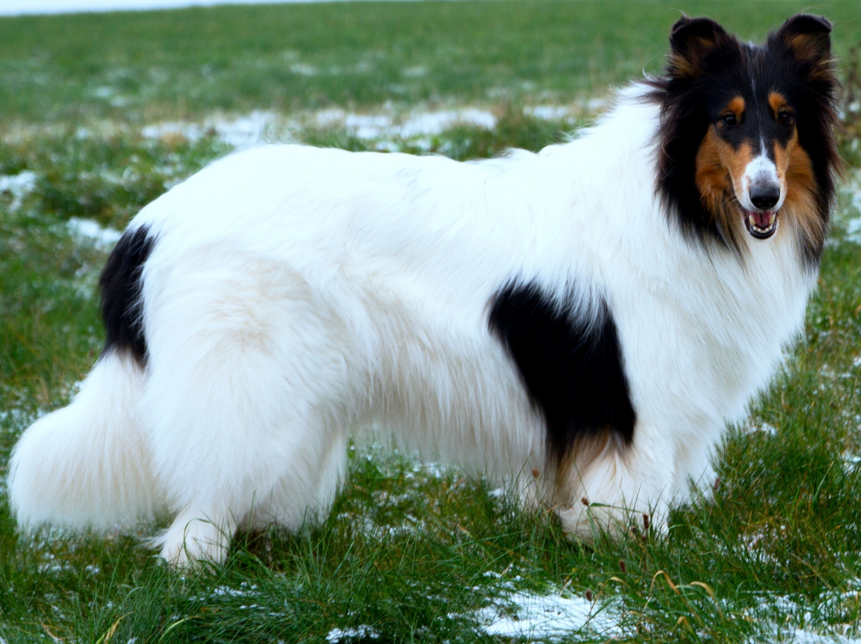 Man unterscheidet zwei Formen von Weiß beim Collie. Zum einen gibt es die genetisch fixierten weißen Abzeichen, wie Kragen, Pfoten, Rutenspitze etc., genannt Irish Pattern. Zum anderen gibt es Piebald White, welches man je nach Ausprägung in seiner minimalen Form (Weißfaktor) am hochgezogenen Weiß der hinteren Läufe erkennen kann und in seiner maximalen Form als Weiß, was sich an den Kragen über den Rumpf verteilt anschließt.