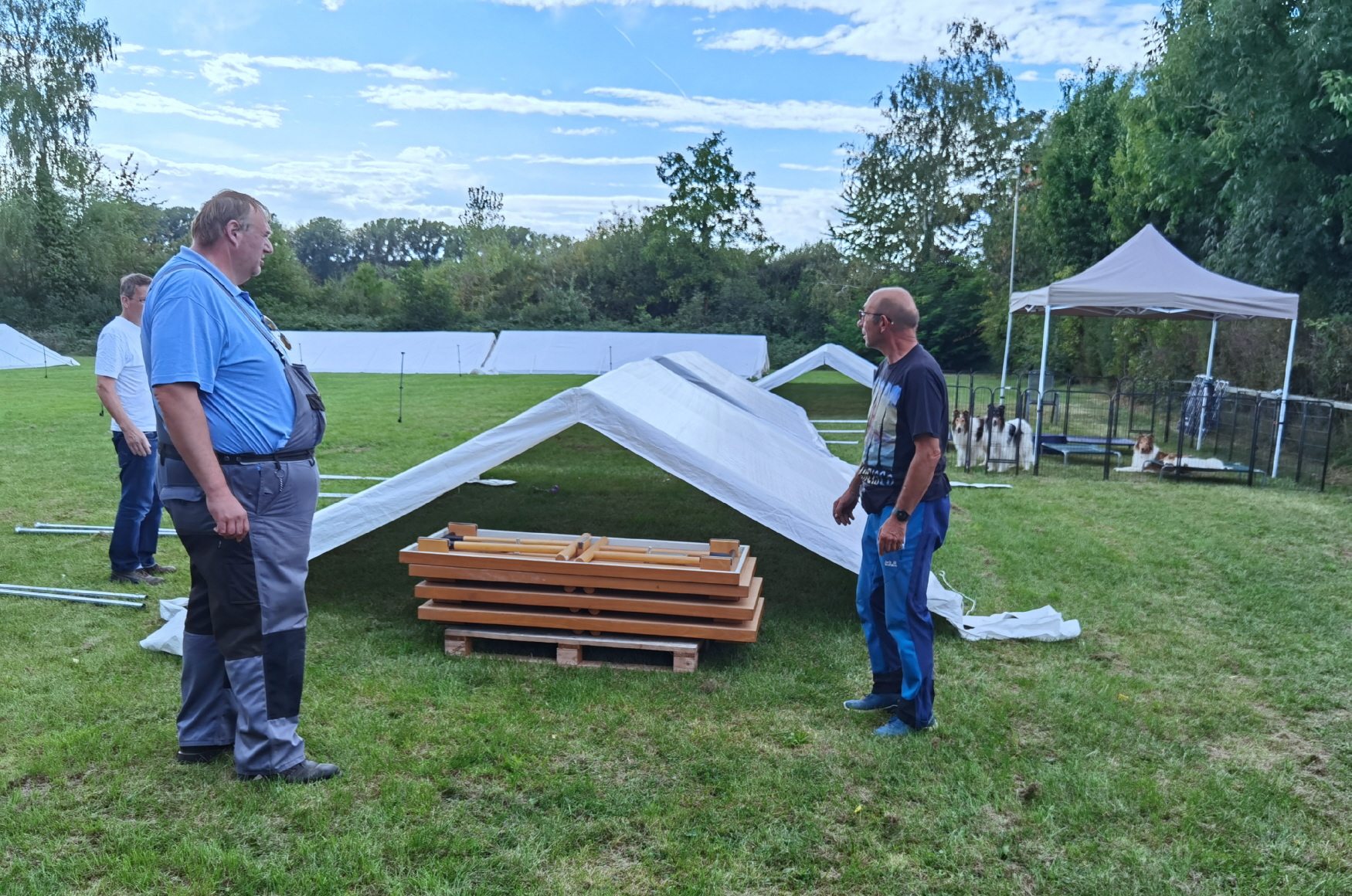 Während die Aufbauarbeiten noch laufen, sind zwischenzeitlich schon die ersten Teilnehmer angereist und wollen betreut werden.