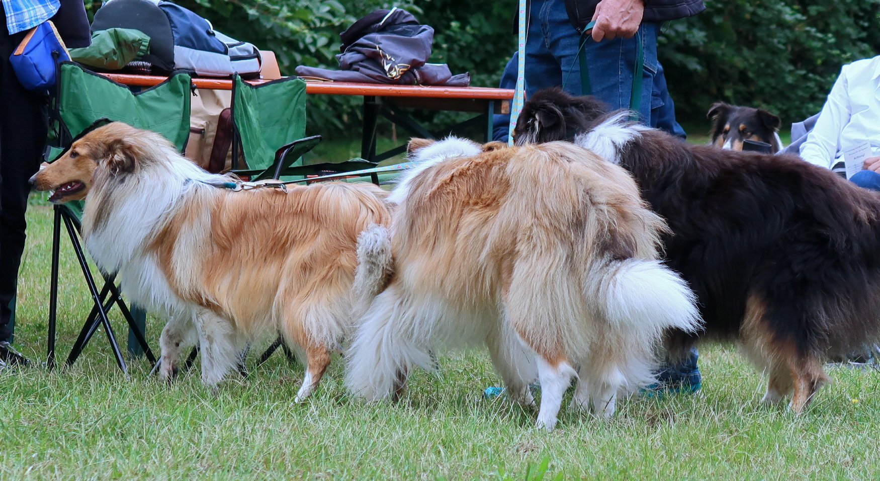 Die zwei Stunden sind wie im Flug vergangen. Wer Zeit fand konnte sich mit Kaffee, belegten Brötchen und Kuchen versorgen. Der VdH Oberhausen-Rheinhausen hat wie immer perfekt vorgesorgt. Mittags kommen noch weitere leckere Speisen dazu. Nach der Begrüßung und Vorstellung unseres Richters geht es los mit dem Richten. Im Rahmen der Beurteilung diktiert Joe Reno zu jedem einzelnen Hund einen Richterbericht. Wir sind Ken sehr dankbar, dass er sich bereit erklärt hat, sie allesamt zu schreiben. Aber damit alleine ist es nicht getan. Durchschläge müssen verwahrt werden und auf den vorbereiteten Urkunden noch die Ziffern bei den platzierten Collies eingetragen werden. Der Rest bekommt Teilnehmerurkunden. Auf den vorbereiteten Anwartschaftskarten müssen für die beiden Erstplatzierten bei entsprechend guten Formwertnoten noch die passende Anwartschaft angekreuzt werden. Alle Unterlagen müssen noch unterschrieben werden. Und nicht zu vergessen der wichtige Posten des Ringhelfers, der den Richter während der Schau begleitet und bei möglichen Verständigungsproblemen hilft und idealerweise auch noch die Worte des Richters übersetzt, wenn er die Vorzüge des Erstplatzierten laut vorträgt, so dass es auch für das Publikum um vielen interessanter wird. Während der ganzen Schau macht die Fotografin Bilder von allen Teilnehmern.