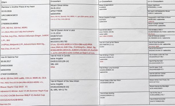 - MDR1 +/+, DM N/N, CEA N/CEA, PRA N/N, GCS folgt, IPD N/N, DMS aa Bb CC, Merle m/m