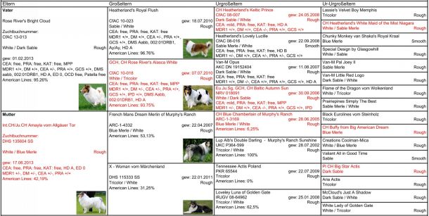 • MDR1 +/+, DM N/N, CEA N/CEA, PRA N/N, GCS N/N, IPD N/N, DMS Aa bb CC, Merle m/m