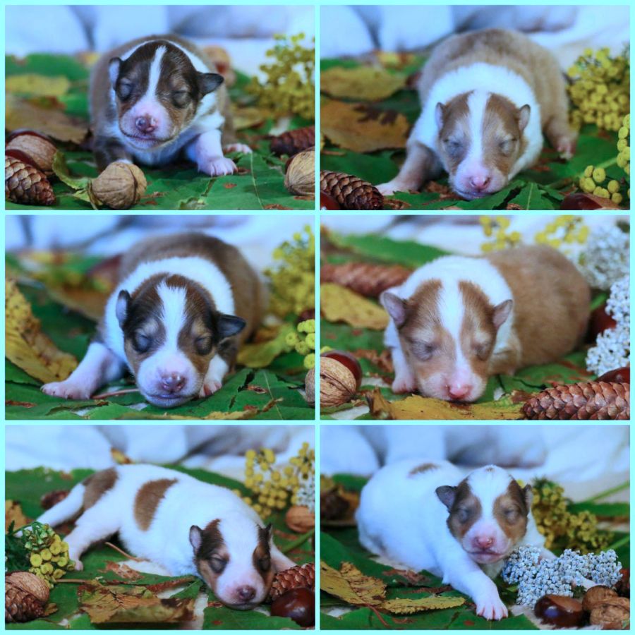 • 5 Rüden (2 Dark Sable, 1 White / DarkSable, 1 White / SableMerle), 1 Hündin (Sable Merle)