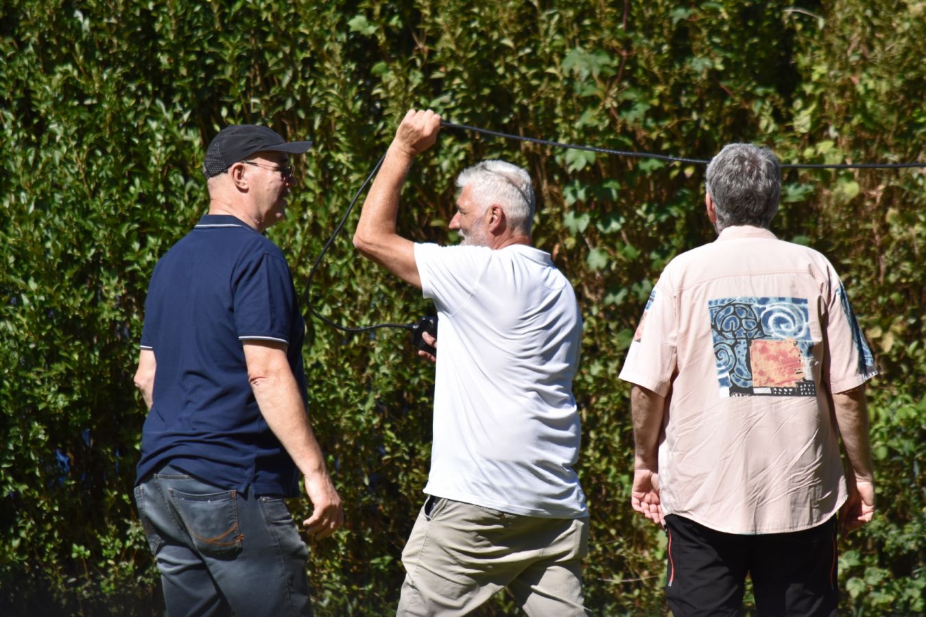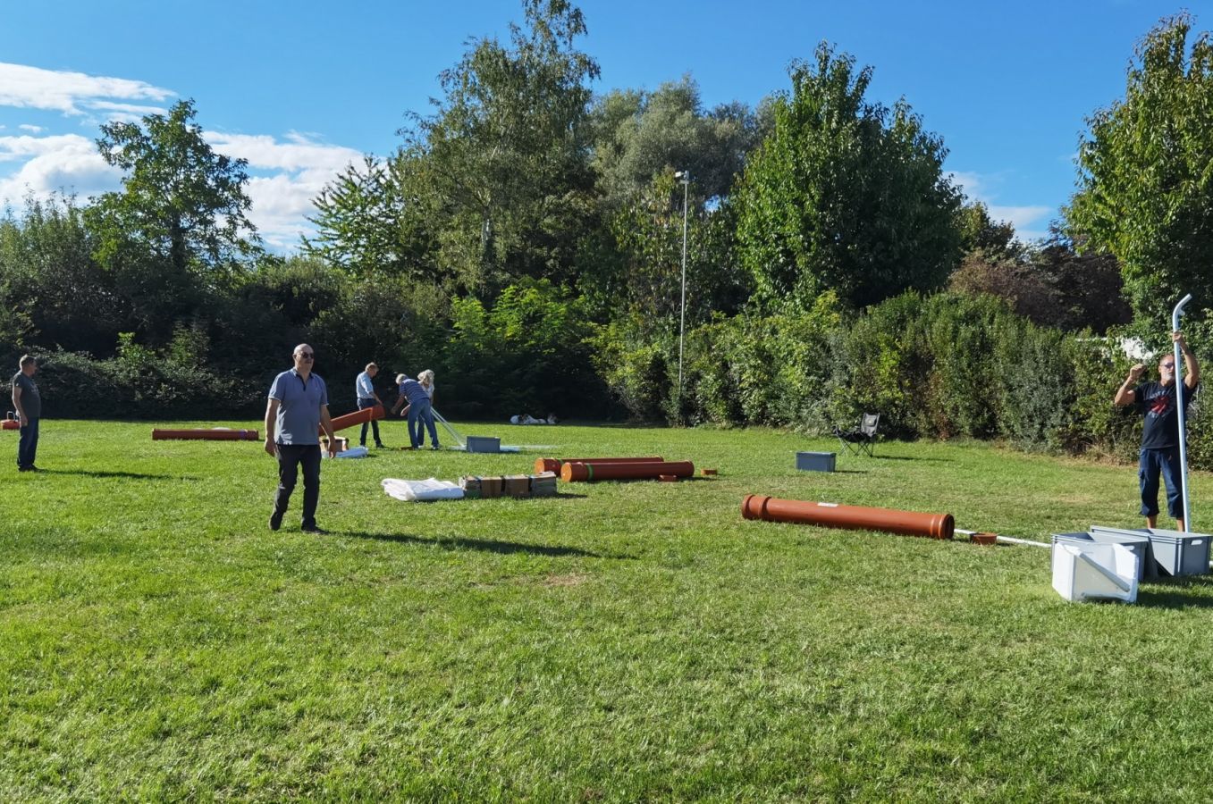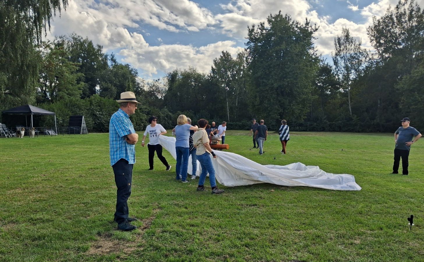 Meanwhile, preparations continue in parallel. The sound system also requires a lot of work. It has to be brought along, set up, and configured, including the power supply and all the cabling. After all, what would a show be without microphone announcements, if only for calling out the starter numbers and the show's schedule? This also requires people to provide support and make announcements throughout the day. The judge has also arrived in the meantime and wants to be briefed on the procedures.