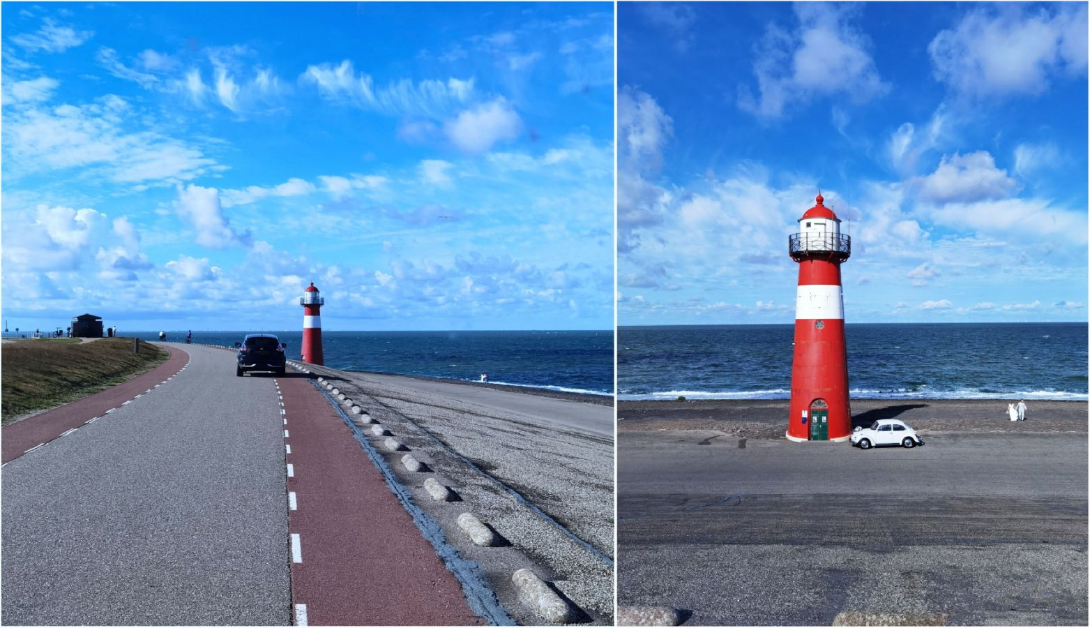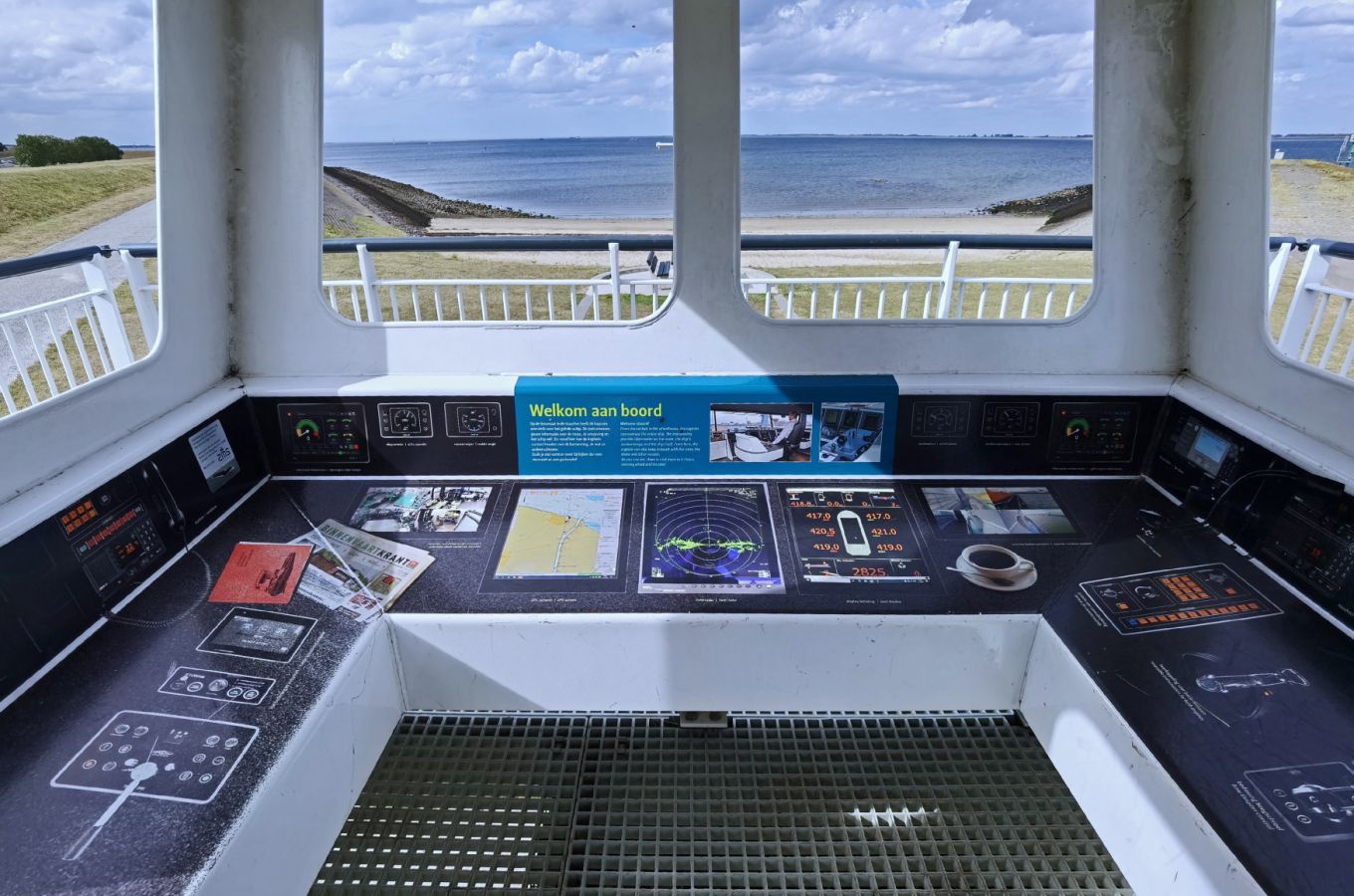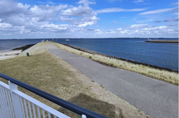 A short stop on the way near Wemeldinge, where the South Beveland Canal (Zuid Beveland Kanaal) flows into the Oosterschelde. From the 't'Schip observation tower, whose platform is modeled after the bridge of a barge, there was a fantastic view. Then we continued along the town toward the northern part of Zeeland.