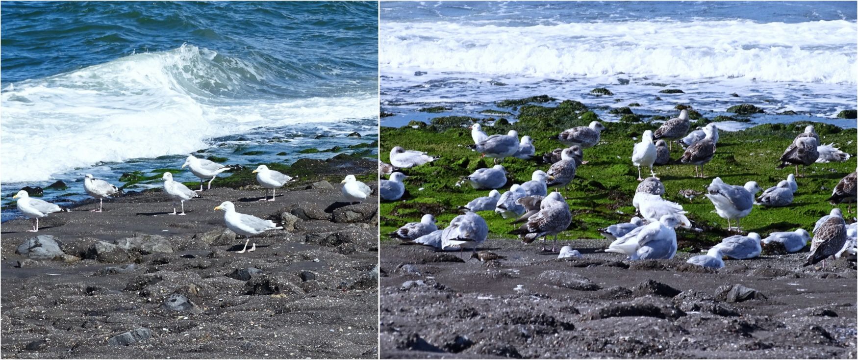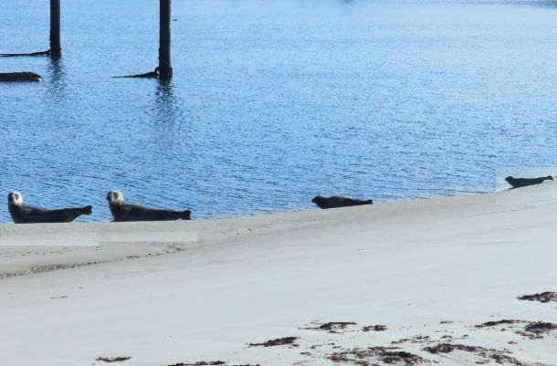 Today we went to the North Sea beach, not without first admiring the seals on the mussel beds.