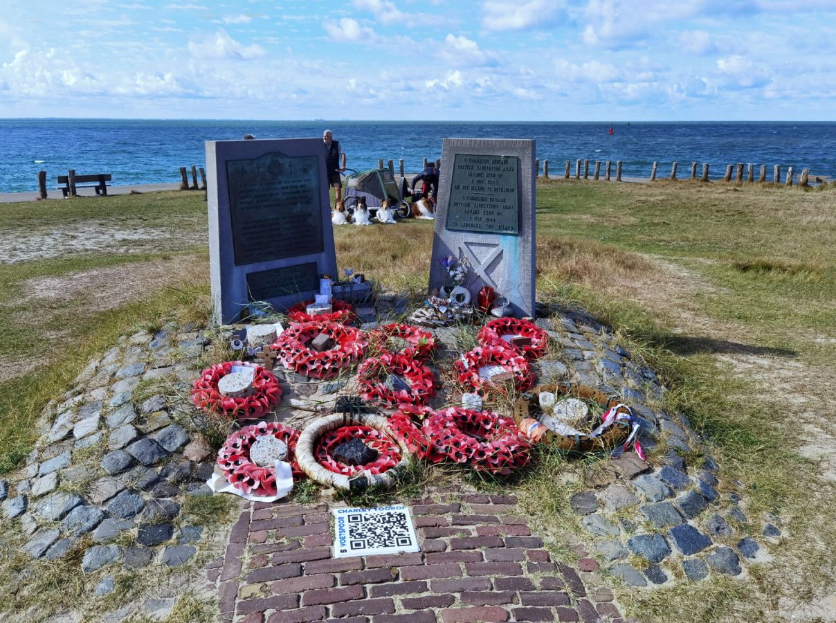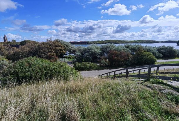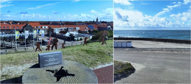 Today we took a trip to Westkapelle, the westernmost tip of Zeeland and thus at the mouth of the Westerschelde, the beginning of the long approach to the port of Antwerp. The invasion monument and memorial, along with else here, commemorate the Allied invasion from the sea on November 1, 1944. The brackish inland lake in the hinterland is a witness to the flooding of the town a month before the invasion, after the dam was destroyed by Allied bombers. Today, the town is a popular tourist destination. We stopped her for a drink and enjoyed a meal under a roof of vines.