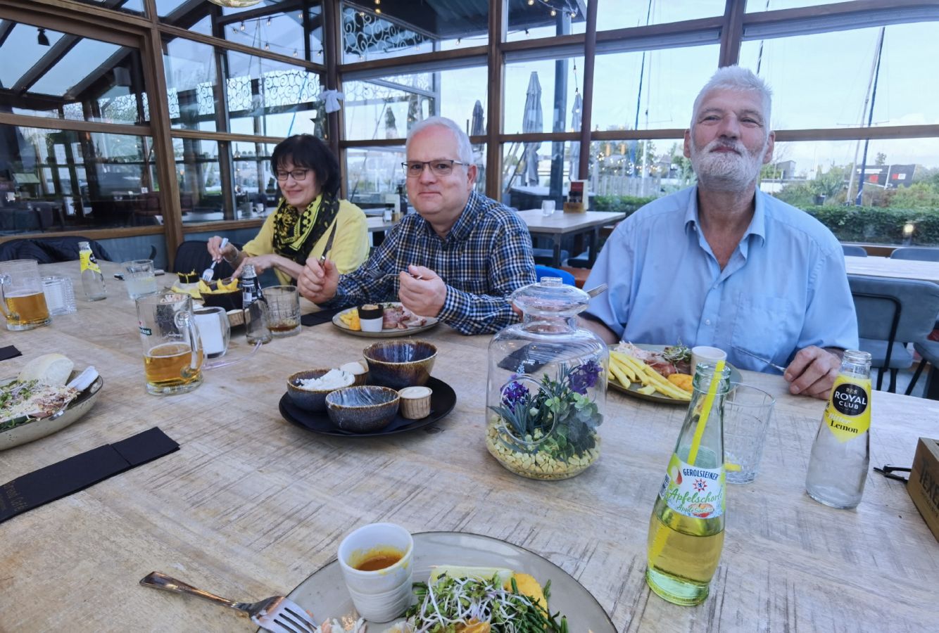 During a walk along a beautiful bay on the Veerse Meer today, our water lovers had a great time, even though the water wasn't as warm as we had hoped. In the evening, we enjoyed another lovely get-together at the restaurant.