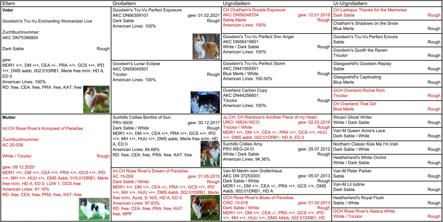 • Goodwin´s Tru-Vu Enchanting Womanizer Live x Int.CH Rose River's Konquest of Paradise