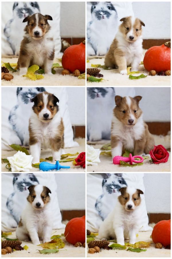 • 5 Rüden (2 Dark Sable, 1 White / DarkSable, 1 White / SableMerle), 1 Hündin (Sable Merle)